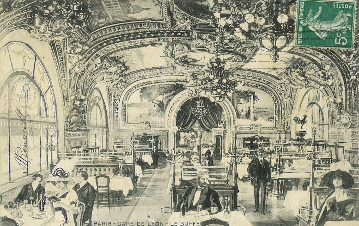 En 1900, à l’occasion de la grande exposition universelle, la direction de la Compagnie des chemins de fer Paris-Lyon-Méditerranée (PLM) décide de confier la construction d’un somptueux restaurant à Marius Toudoire, architecte de renom qui avait conçu la tour-horloge et la façade de la gare de Lyon. Le Buffet de la gare ouvre ses portes le 7 avril 1901. Il est inauguré par Emile Loubet, président de la République. Son décor luxueux et élégant attire aussitôt la haute société ainsi que des peintres en vogue à l’époque.